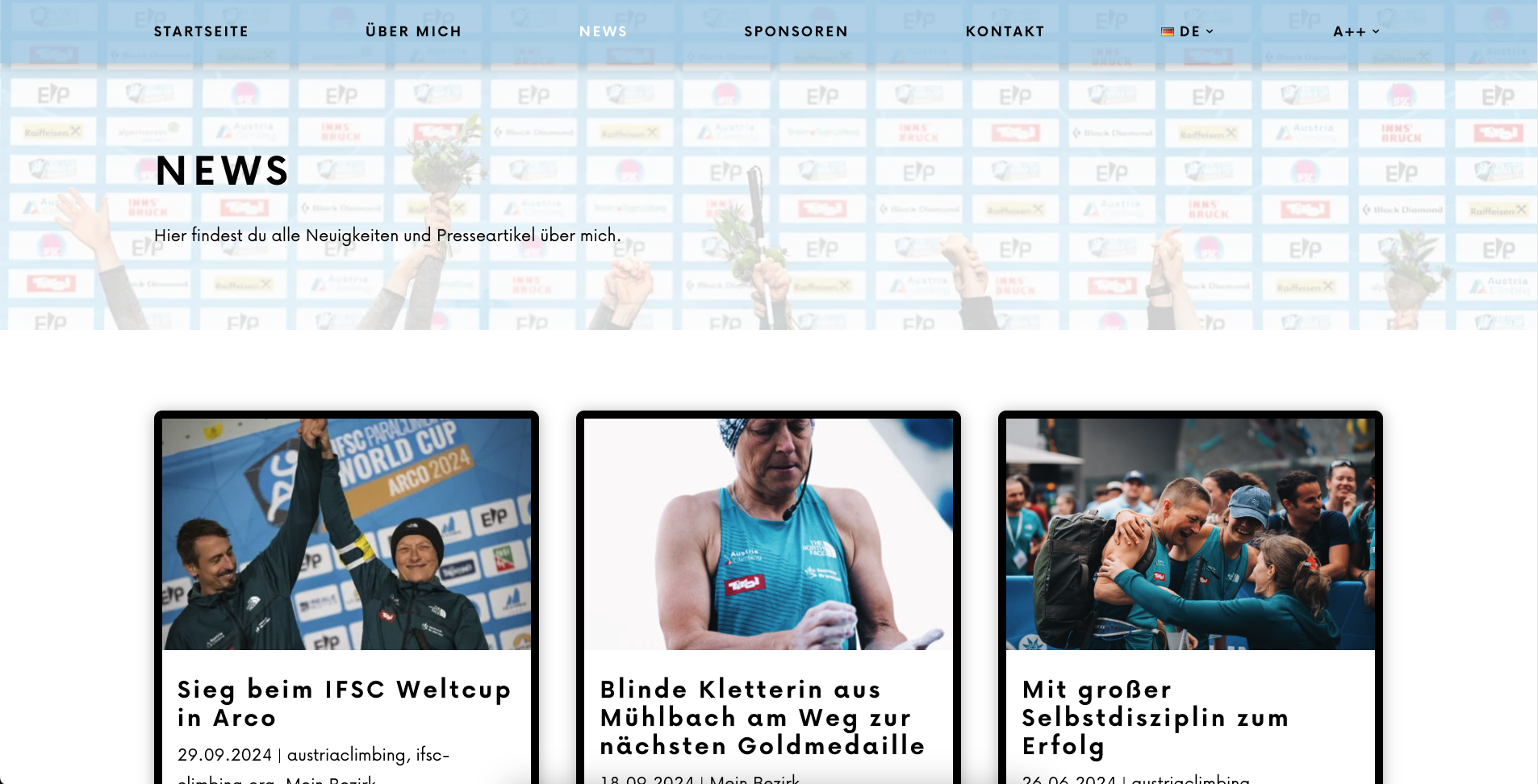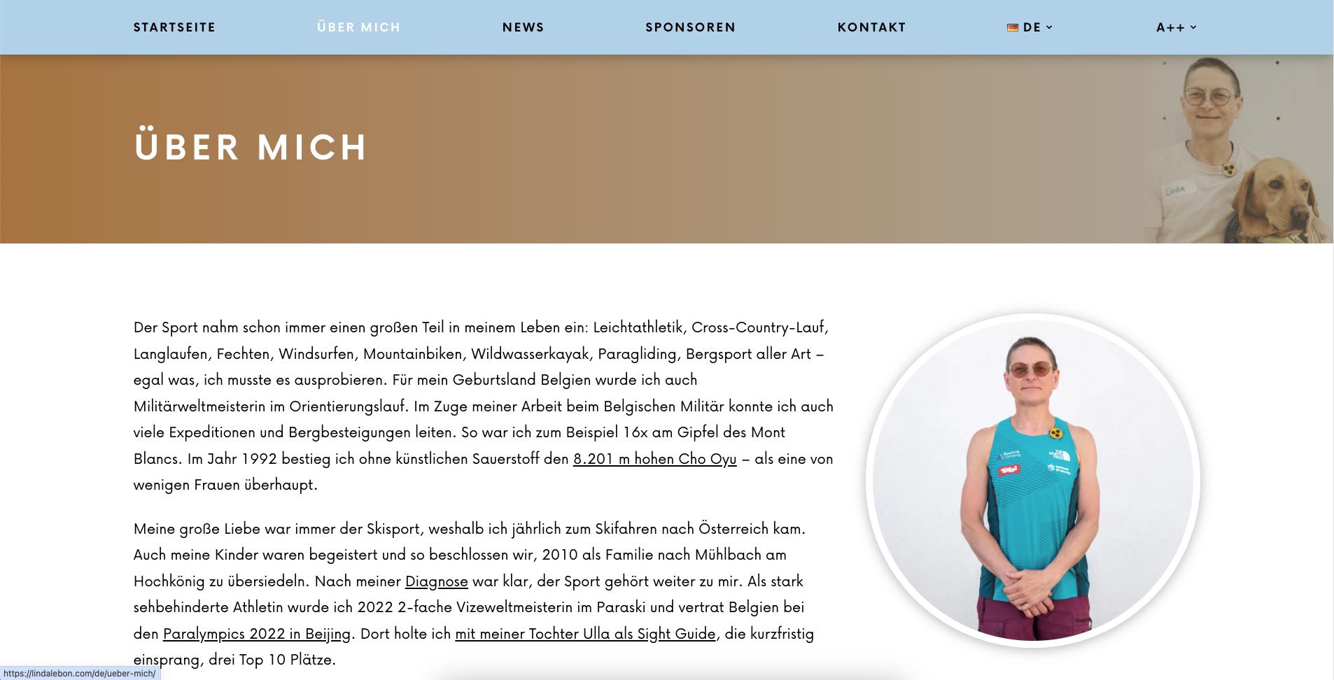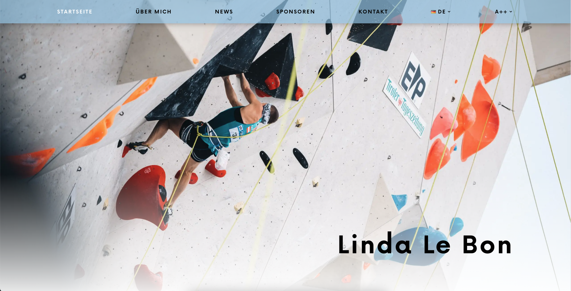 Die Webseite von Linda Le Bon – einer blinden Paraclimberin – ist im Zuge meiner Tätigkeit für Sie entstanden, um Sponsoren und Unterstützer zu suchen. Auf der Startseite soll Linda mit Wort und Bild vorgestellt werden. Ebenso wollten wir Raum für die Sponsoren geben und viele schöne Bilder von Linda zeigen. Da Linda schon so unglaublich viel in ihrem Leben gemacht und erlebt hat, haben wir dem „Über mich“ Bereich ein besonderes Augenmerk geschenkt und dort viele Details zu ihr veröffentlicht. Ein „News“ Bereich sollte aktuelle Artikel und Geschichten über Linda und die Wettkämpfe beinhalten. Zu guter Letzt wird auf der Sponsorenseite jeder Sponsor mit Logo und ein paar Details vorgestellt.